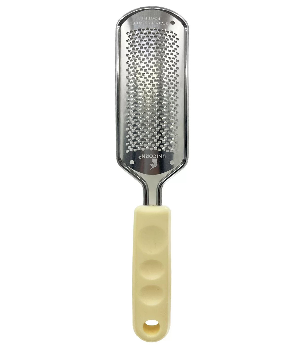 ابزار ها و وسایل بی شماری برای پدیکور و کفسابی پا موجود می باشد که رنده پا یکی از این وسایل است و در انواع گوناگون موجود می باشد، از این رنده پای دسته پلاستیکی دنده ریز برند یونیکورن برای از بین بردن پوست های ضخیم و خشک کف پا، از بین بردن لایه های مرده و کفسابی استفاده می شود و کیفیت بسیار بالایی دارد و به راحتی کند نمی شود و با دسته بسیار مقاوم پلاستیکی برای پدیکور حرفه ای در سالن ها یا منازل بسیار مناسب است.