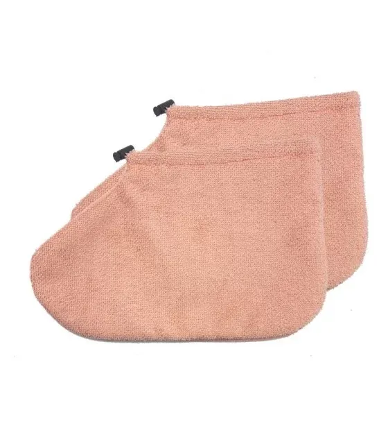 استفاده از پا پوش حوله ای پارافین تراپی اثر آن را چندین برابر می کند چون بعد از زدن پارافین باید پا ها را 20 الی 30 دقیقه در پا پوش حوله ای قرار دهید که به خوبی جذب پوست شده و به نرم شدن هر چه سریع تر پوست های سخت جهت ریموو و آبرسانی کمک کند.