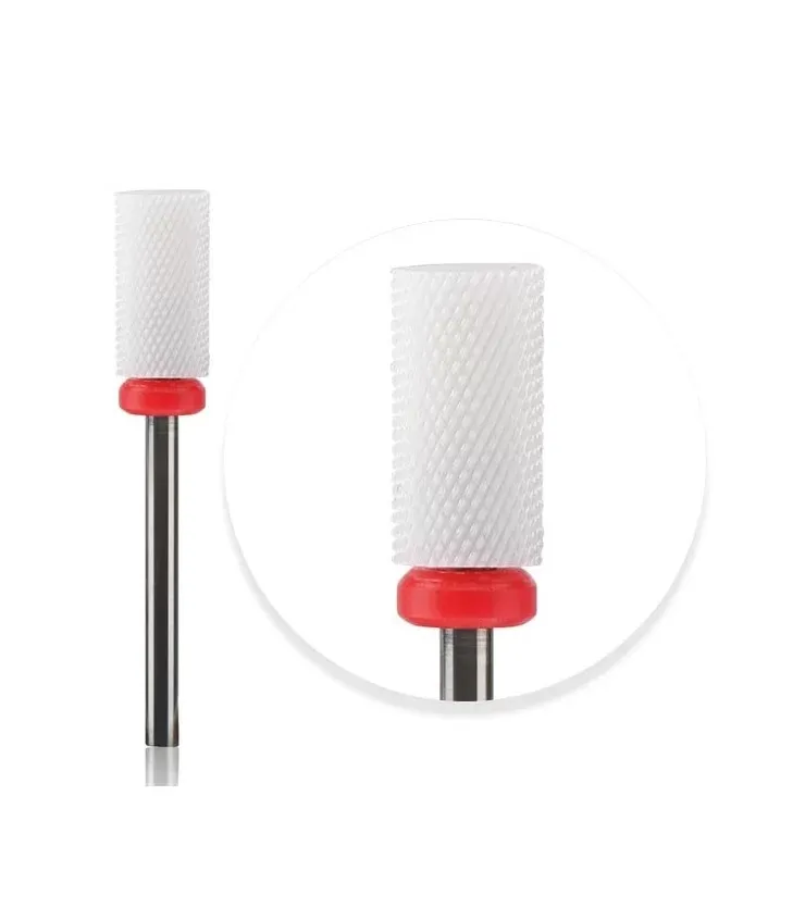 از سر سوهان سرامیکی استوانه ای با نوار قرمز به دلیل زبری متوسط می توان برای کم کردن بار اضافی مواد روی ناخن های کاشت شده و کوتاه کردن کاشت ژل و کاشت اکرلیک (کاشت ناخن با پودر) استفاده کرد. رنگ قرمز نوار دور سر سوهان بیانگر درجه زبری متوسط آن می باشد. لازم به ذکر است که ناخنکاران مبتدی بهتر است جهت دورگیری از سر سوهان استوانه ای سر گرد استفاده نمایند.